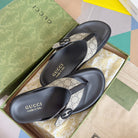 GG Men's Thong Sandals Brown Canvas 558135