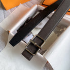 H BELT SILVER BUCKLE DARK BROWN BLACK LEATHER RIVERSIBLE 3.8CM