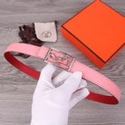 H BELT WOMEN SILVER BUCKLE 24MM ROSE RED LEATHER