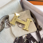 • H Buckle in permabrass plated metal.