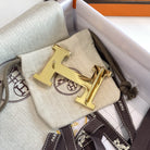 H CONTANCE BELT 38MM GOLD BUCKLE GOLD GREY LEATHER