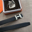 H CONTANCE BELT 38MM SILVER BUCKLE DARK BLUE LEATHER
