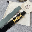 H MARIN REVERSIBLE BELT 32MM GOLD BUCKLE BLACK SKY BLUE LEATHER
