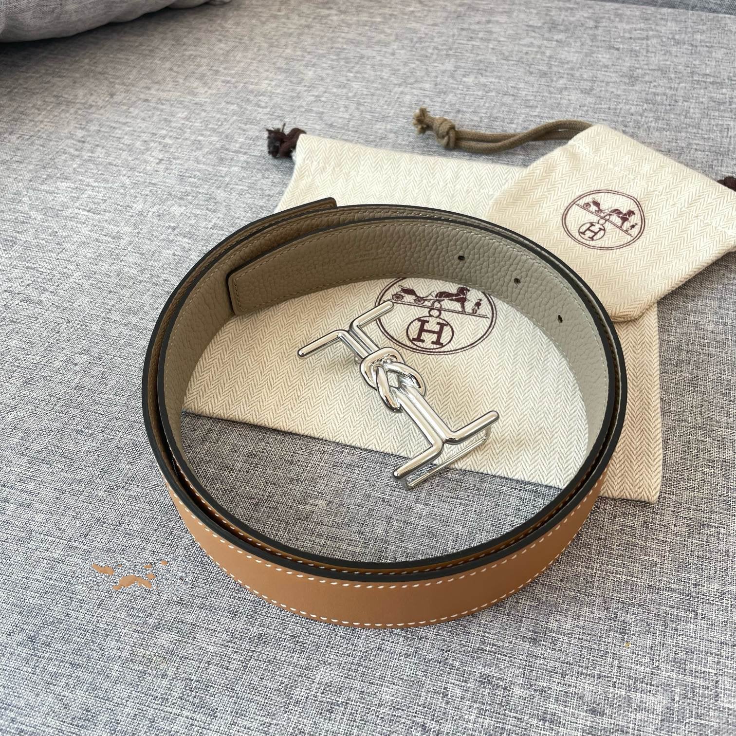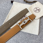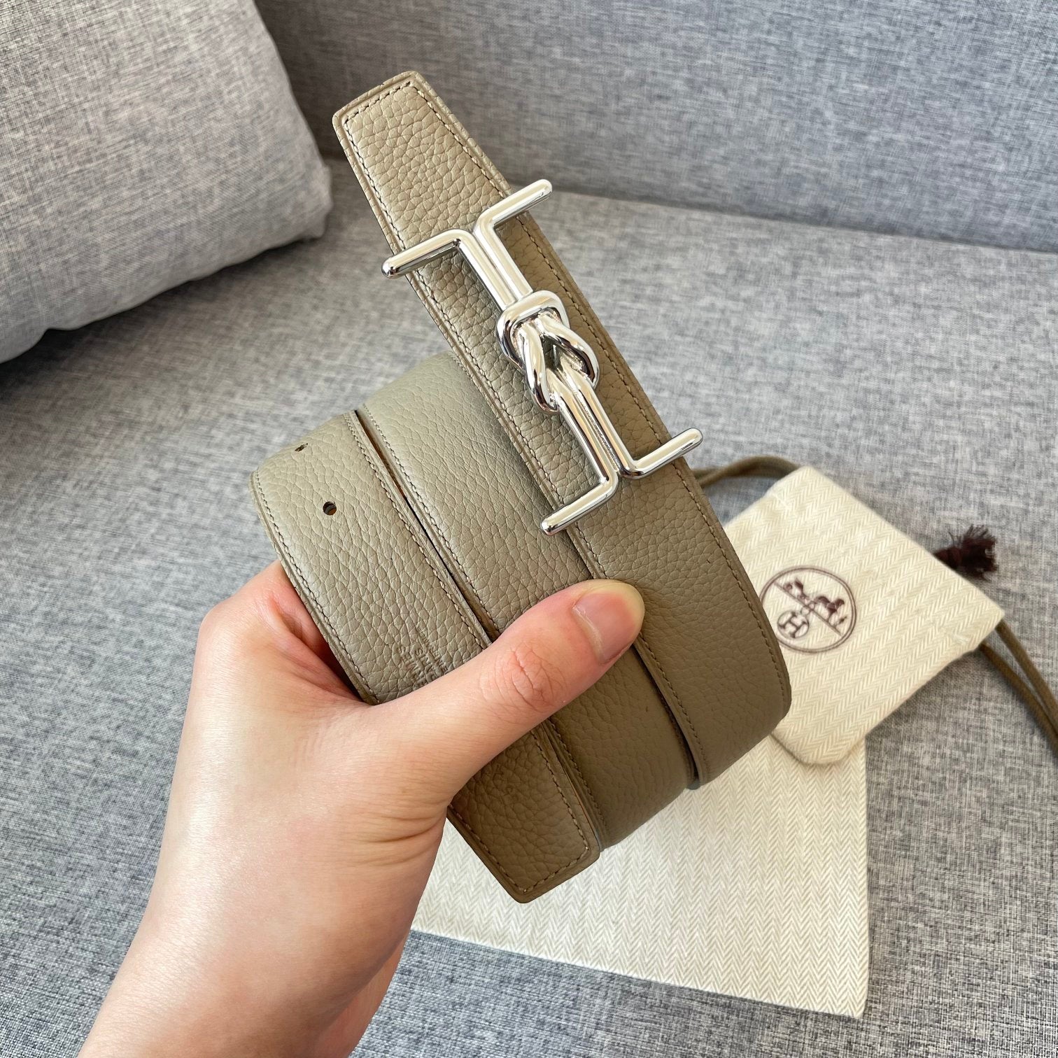 H MARIN REVERSIBLE BELT 32MM SILVER BUCKLE GOLD TIN GREY LEATHER