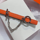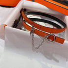 H SILVER BUCKLE WOMEN'S BELT ORANGE BLACK LEATHER STRAP 1.3CM