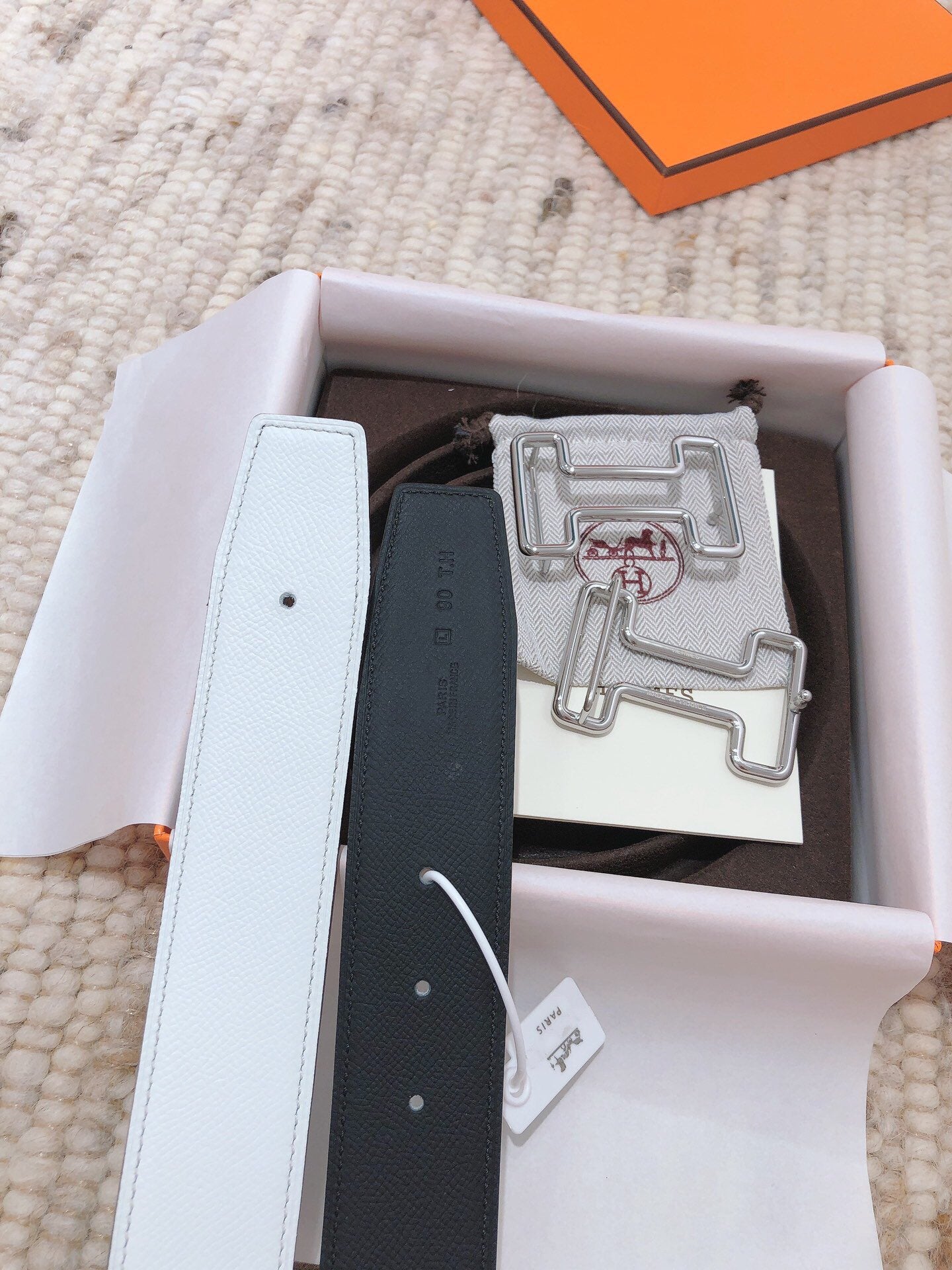 H TONIGHT BELT 38MM BLACK WHITE LEATHER