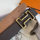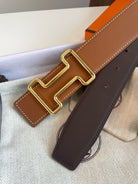 H TONIGHT BELT 38MM GOLD BUCKLE CHESTNUTE GRAPHITE LEATHER