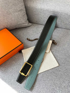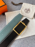 H TUBE BELT 38MM GOLD BUCKLE SKY BLUE BLACK LEATHER