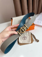 H ULYSSE BELT 38MM GOLD BUCKLE BLUE GREY LEATHER