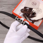 H WOMEN'S BELT 13MM SILVER BUCKLE BLACK LEATHER