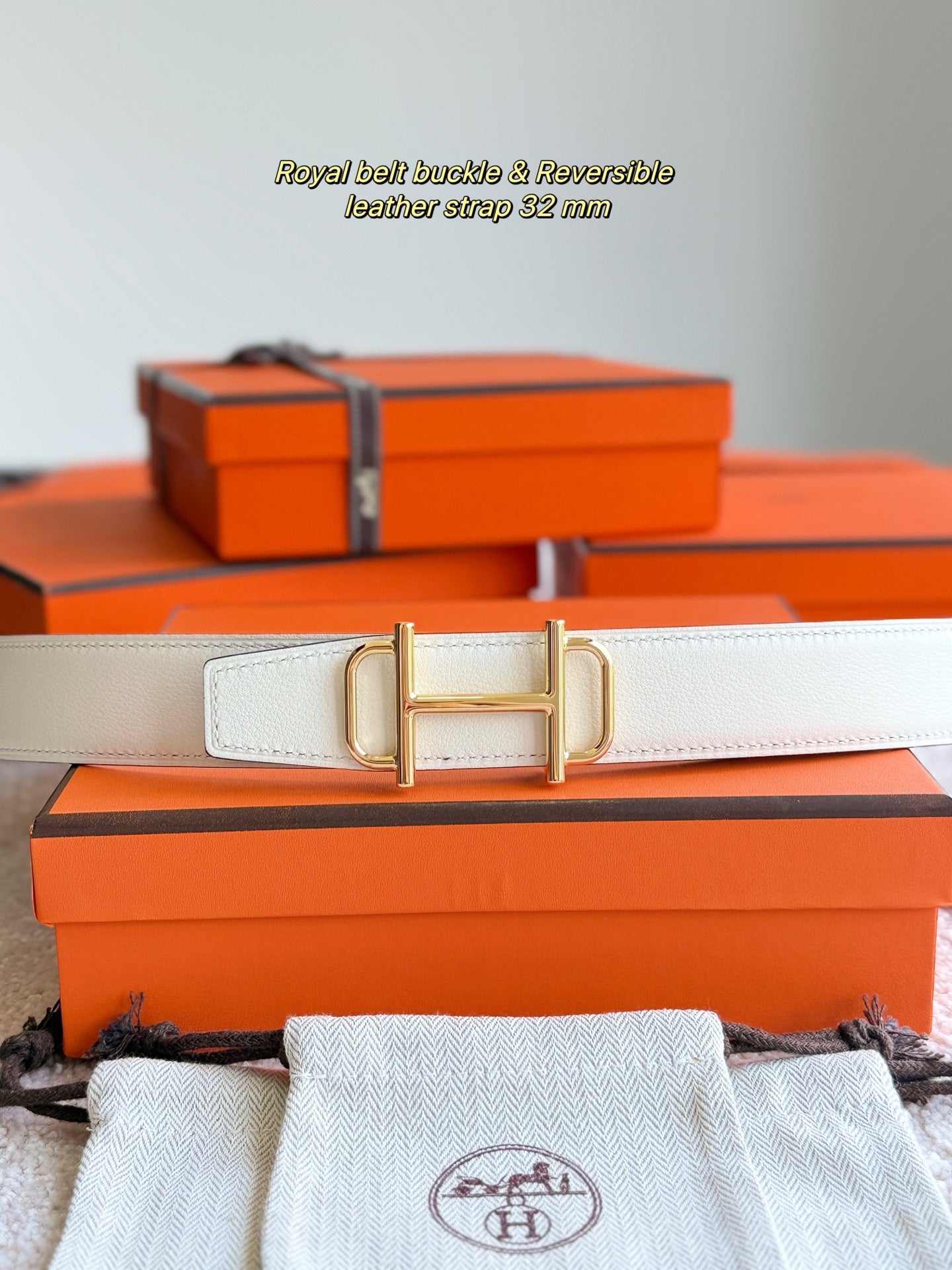 HM Gold Buckle 32mm Royal Belt Ivory Leather 188425