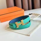 HM Gold Constance & Reverible Belt Blue Green Leather 125374