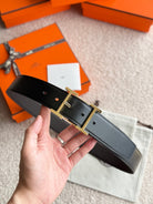 HM Gold Hadrien Reversible 38mm Belt Black Chocolate Leather 188080