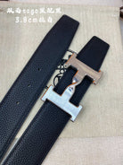 HM H BELT BUCKLE & REVERSIBLE BLACK LEATHER STRAP 38MM SILVER HARDWARE