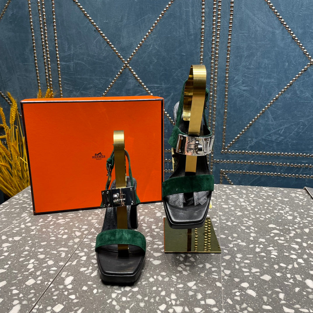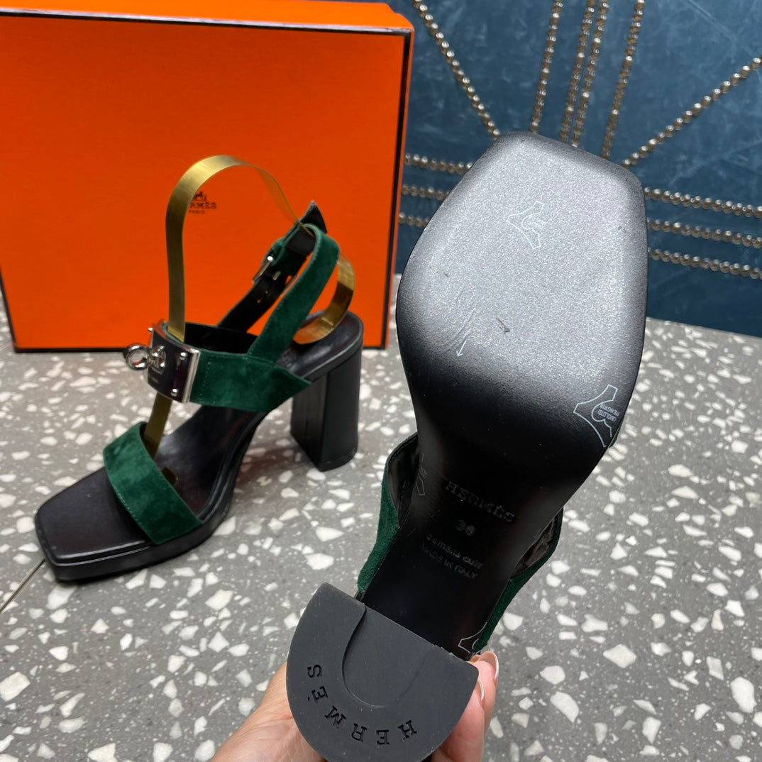 ILONA SANDAL 95 DARK GREEN SUEDE