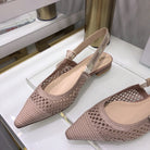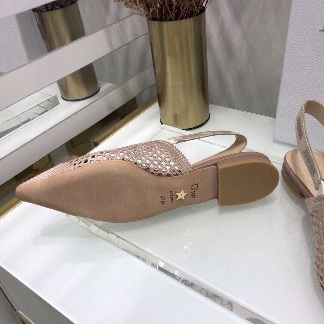 JAdior slingback flat transparent mesh rose canelle embroidered cotton