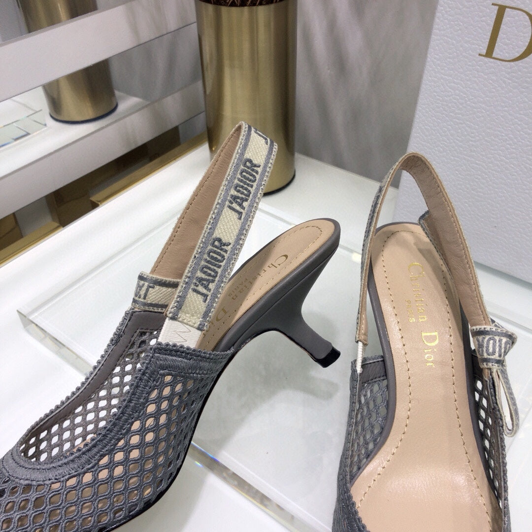JAdior slingback pumps 65 transparent mesh grey embroidered cotton