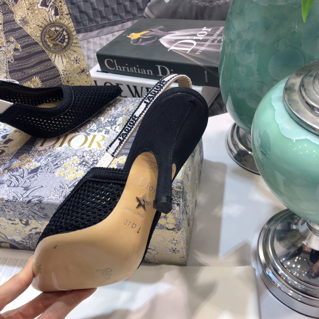JAdior slingback pumps 95 full transparent mesh black embroidered cotton