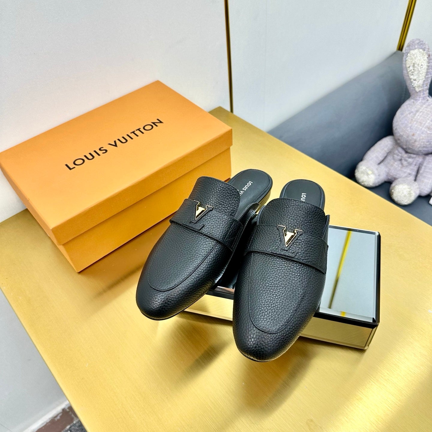LV 25C LV Capri Open Back Loafer Black Wrinkled Cowhide 219926