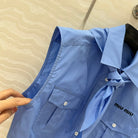 Miu Miu 25 Bow Tie Vest Shirt Blue Cotton