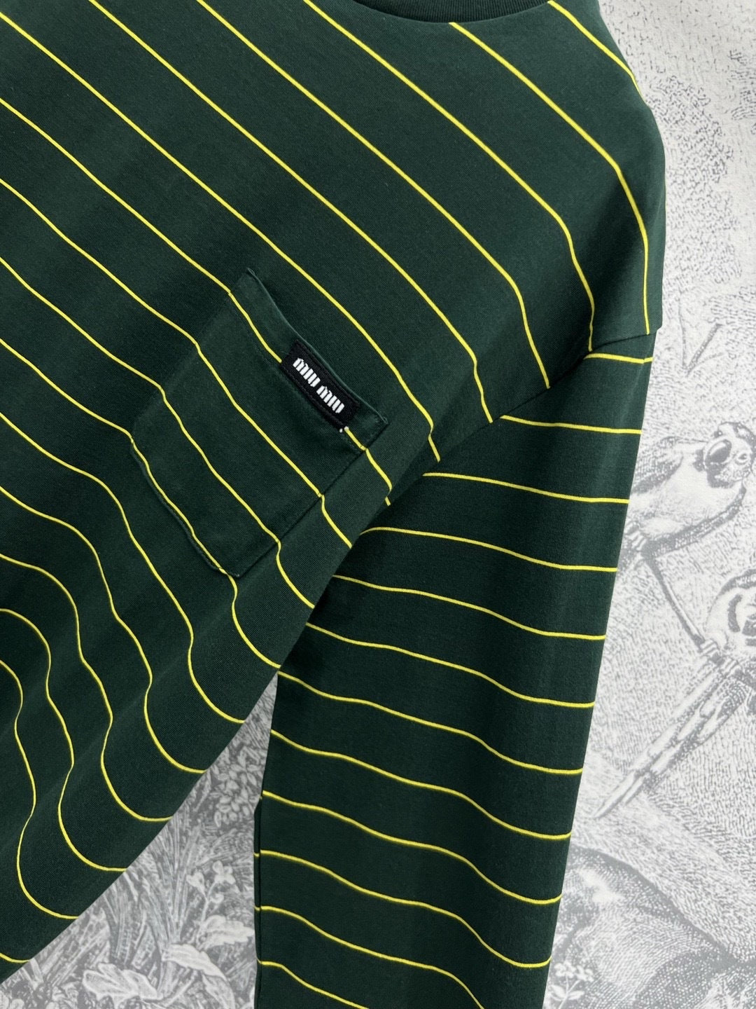 Miu Miu 25 Striped Long-sleeved T-shirt Green Cotton