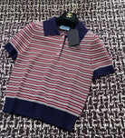 Prada 25 Striped Polo Shirt Navy Blue mix Red Tencel Wool