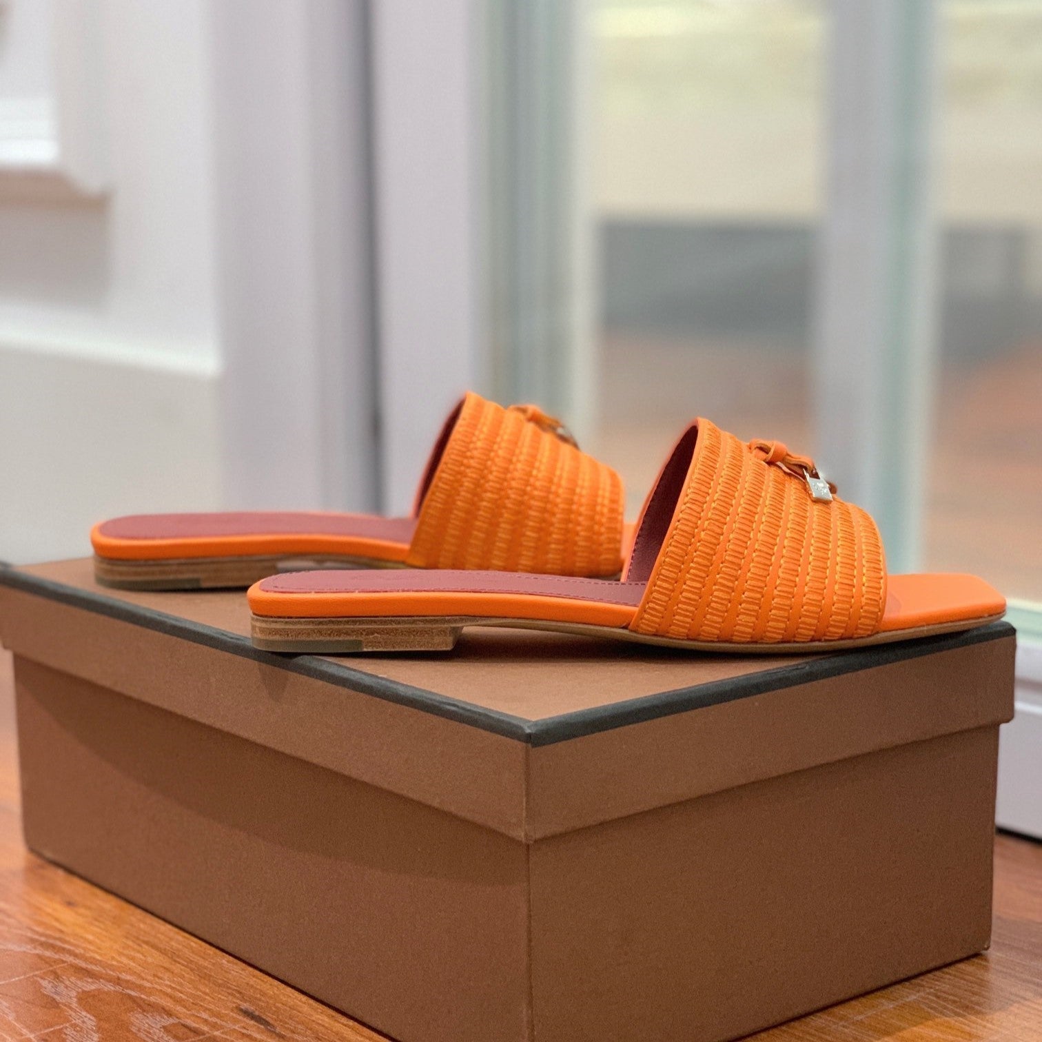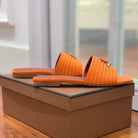 Quare Toe Sprightly Charms Mule Orange Marron Calfskin