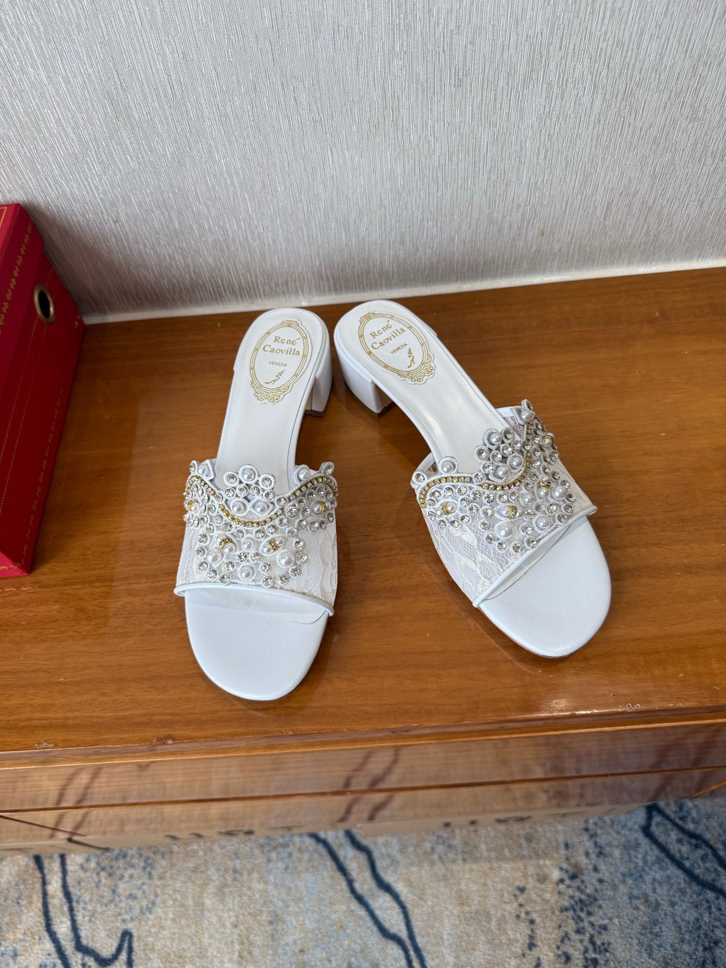 RC 25 Crystal Chandelier Sandals White Sheepskin 221963