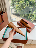 rebecca ballerina flat brown calfskin