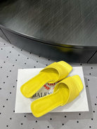 SQUARE-TOE MEDIUM HEEL MULES IN YELLOW CALFSKIN LOGO EMBOSSED