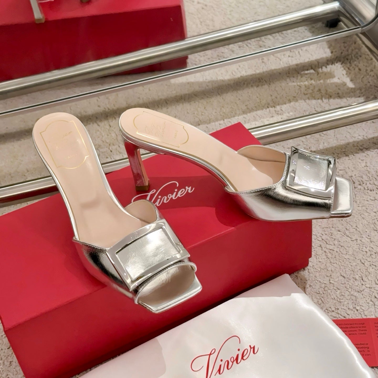 Viv Retro Modern Mules Silver Cowhide Leather 261719