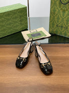 WOMEN'S HORSEBIT SLINGBACK 55MM IN BLACK CALFSKIN WITH RHINSTONES